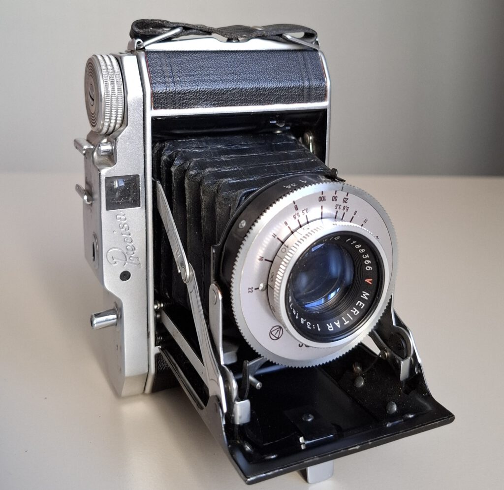 Die Precisa IIa markiert einen späten Entwicklungsschritt der klassischen Rollfilm-Balgenkamera im Hause Beier. Sie vereint traditionelle Bauweise mit funktionalen Verbesserungen wie dem Entfernungsmesser und steht damit am Übergang von der Vorkriegskonstruktion zur Nachkriegsproduktion in der DDR.
