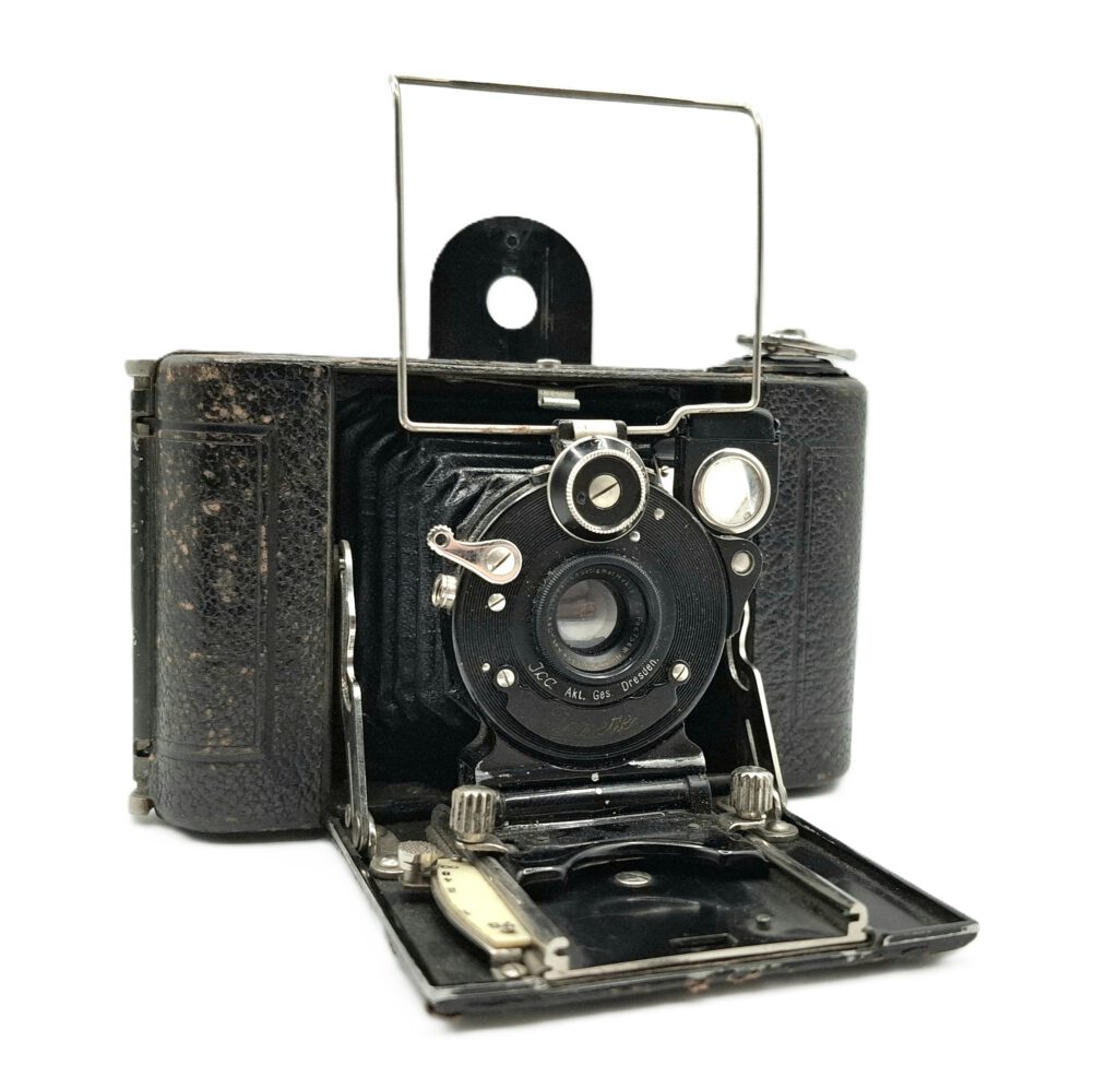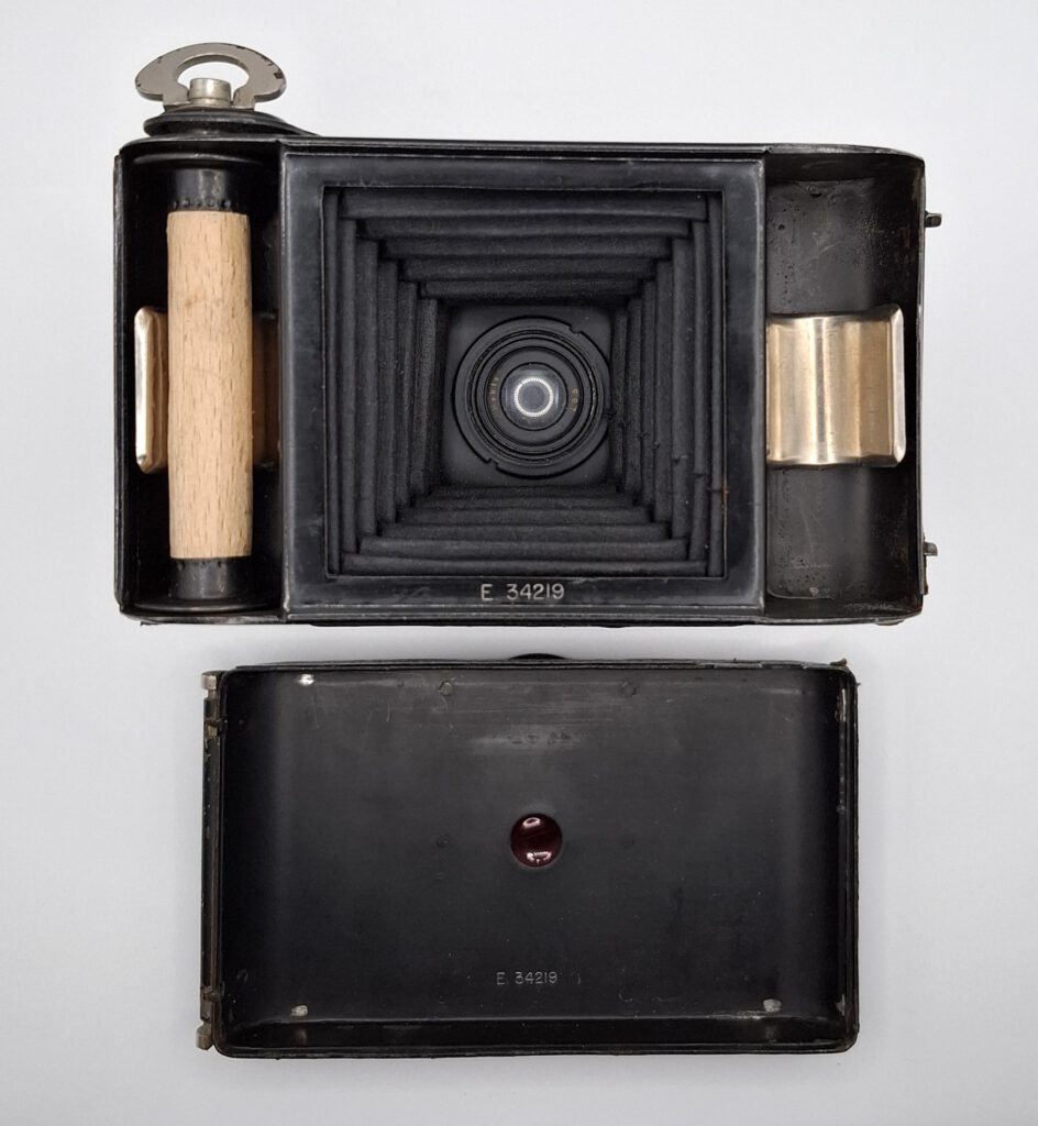 Kennzeichnend für die Konstruktion sind der klappbare Laufboden, der ausziehbare Lederbalgen und die Hebelfokussierung der Frontstandarte. Das Gehäuse ist aus Metall gefertigt und mit einer schwarzen Rindslederimitation bezogen.