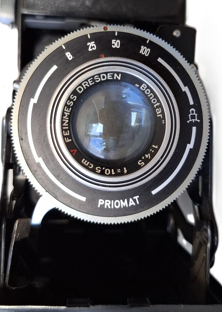 Die Belfoca I arbeitet mit 120er Rollfilm und ermöglicht zwei Aufnahmeformate: