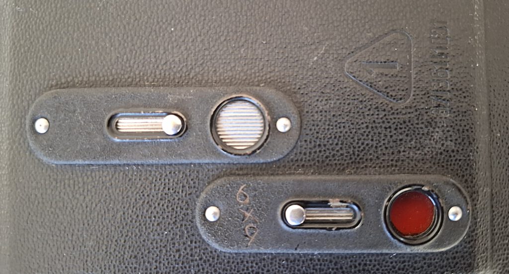 Die Motivauswahl erfolgt durch einen einfachen Rahmen-Klappsucher ohne optische Elemente. Der Sucherausschnitt kann durch einen kleinen Hebel am Sucher auf das quadratische 6×6-Format beschränkt werden.